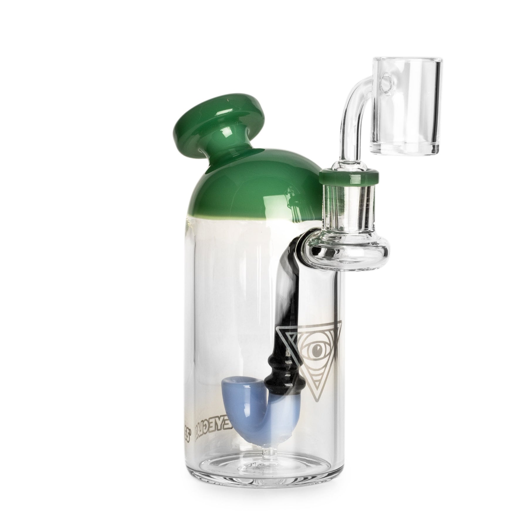 Red Eye Glass brings innovation to concentrate consumption with this compact 6" dab rig featuring an ingenious built-in hand pipe design. Vapour filters through the internal pipe mechanism, delivering a smooth, distinctive dabbing experience. Crafted from durable 100% borosilicate glass, this pint-sized rig combines portability with performance. Available in multiple colours to match your style, it's the perfect choice for enthusiasts seeking something beyond standard rigs.