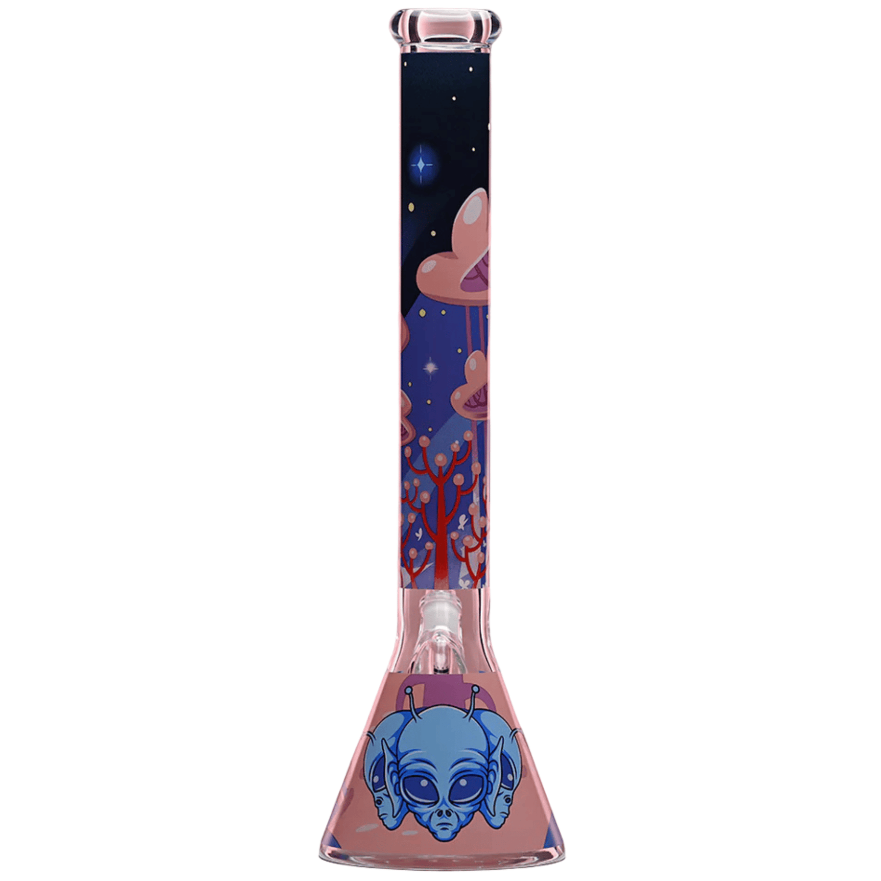 Bold design meets serious durability. The Alien Beaker is built from premium borosilicate glass and reinforced with a thick, heavy-duty base for maximum stability. If you’re looking for a solid daily driver that delivers smooth, powerful pulls, this 18-inch beaker gets it done.